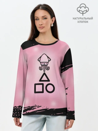 Лонгслив женский. Хлопок / МИЛЫЙ КАЛЬМАР | ТРЕУГОЛЬНИК КВАДРАТ КРУГ