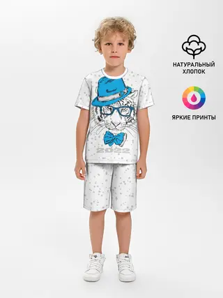 Детская пижама с шортами / Белый тигр в синей шляпе