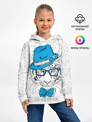 Детское худи / Белый тигр в синей шляпе