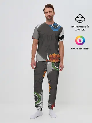 Пижама офигенная, ткань эластичная, не растягивается, рисунок яркий, после стирок яркость не теряется, к телу тоже очень приятная. Думаю сноса ей не будет