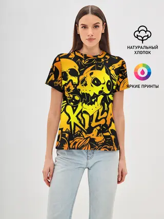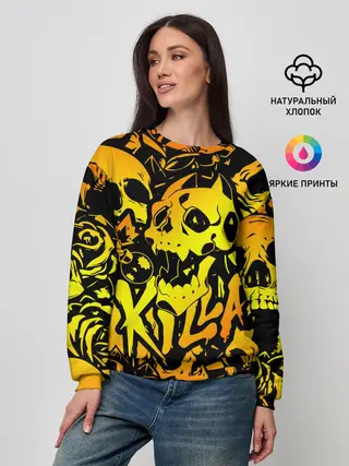 Пижама офигенная, ткань эластичная, не растягивается, рисунок яркий, после стирок яркость не теряется, к телу тоже очень приятная. Думаю сноса ей не будет