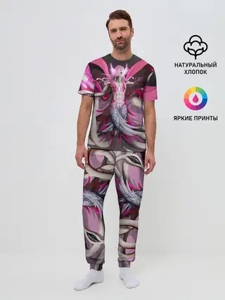 Пижама офигенная, ткань эластичная, не растягивается, рисунок яркий, после стирок яркость не теряется, к телу тоже очень приятная. Думаю сноса ей не будет