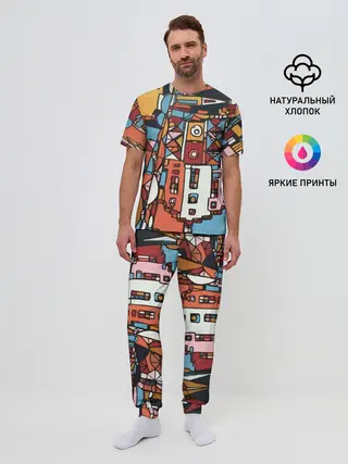 Пижама офигенная, ткань эластичная, не растягивается, рисунок яркий, после стирок яркость не теряется, к телу тоже очень приятная. Думаю сноса ей не будет