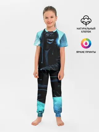 Пижама яркая. После стирки не полиняла. На рост 114 см взяли размер 122 и не пожалели