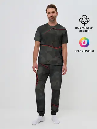 Пижама офигенная, ткань эластичная, не растягивается, рисунок яркий, после стирок яркость не теряется, к телу тоже очень приятная. Думаю сноса ей не будет