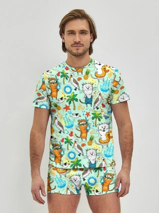 Детская пижама с шортами / Коты на отдыхе