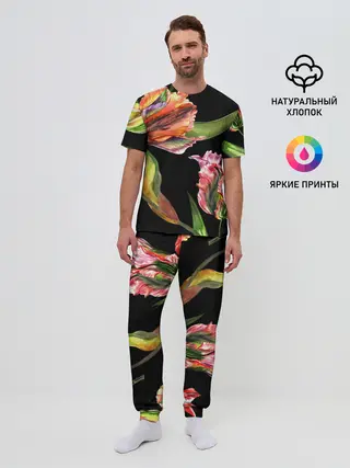 Пижама офигенная, ткань эластичная, не растягивается, рисунок яркий, после стирок яркость не теряется, к телу тоже очень приятная. Думаю сноса ей не будет