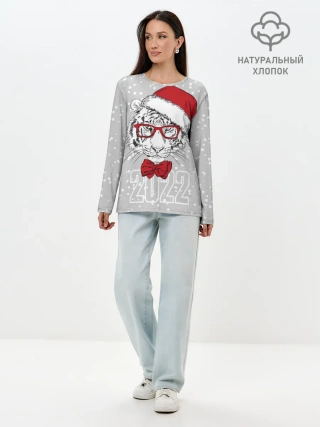 Детская пижама с шортами / Белый тигр в шапке Санты