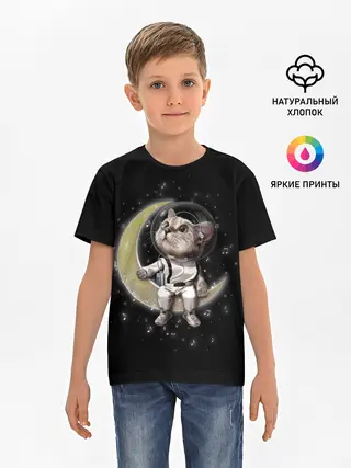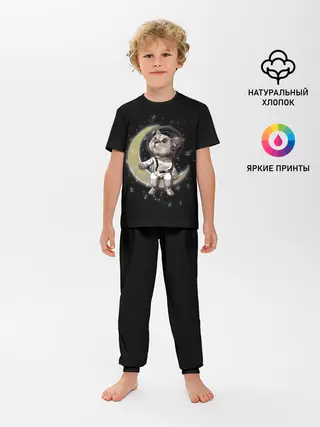 Детская пижама с шортами / КОТИК НА ЛУНЕ