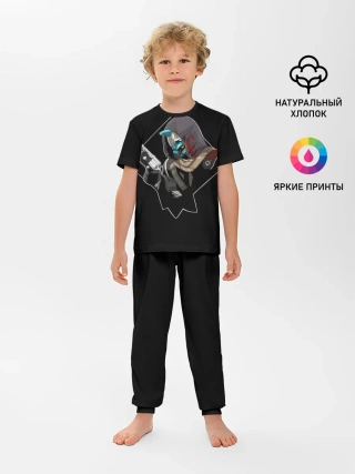 Пижама офигенная, ткань эластичная, не растягивается, рисунок яркий, после стирок яркость не теряется, к телу тоже очень приятная. Думаю сноса ей не будет