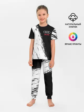 Пижама офигенная, ткань эластичная, не растягивается, рисунок яркий, после стирок яркость не теряется, к телу тоже очень приятная. Думаю сноса ей не будет
