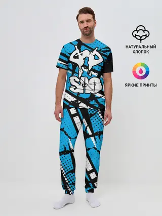 Пижама офигенная, ткань эластичная, не растягивается, рисунок яркий, после стирок яркость не теряется, к телу тоже очень приятная. Думаю сноса ей не будет