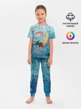 Пижама яркая. После стирки не полиняла. На рост 114 см взяли размер 122 и не пожалели