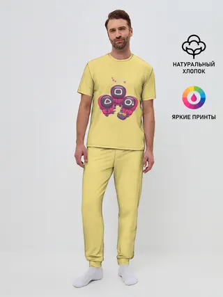 Пижама офигенная, ткань эластичная, не растягивается, рисунок яркий, после стирок яркость не теряется, к телу тоже очень приятная. Думаю сноса ей не будет