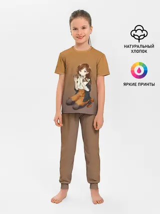 Детская пижама с шортами / анимешная девочка очки офис