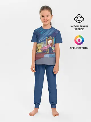 Пижама яркая. После стирки не полиняла. На рост 114 см взяли размер 122 и не пожалели
