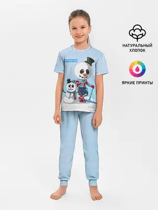 Пижама яркая. После стирки не полиняла. На рост 114 см взяли размер 122 и не пожалели