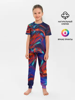 Пижама яркая. После стирки не полиняла. На рост 114 см взяли размер 122 и не пожалели