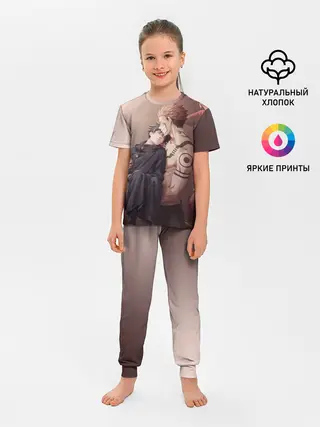 Пижама офигенная, ткань эластичная, не растягивается, рисунок яркий, после стирок яркость не теряется, к телу тоже очень приятная. Думаю сноса ей не будет
