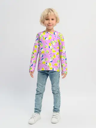 Пижама яркая. После стирки не полиняла. На рост 114 см взяли размер 122 и не пожалели