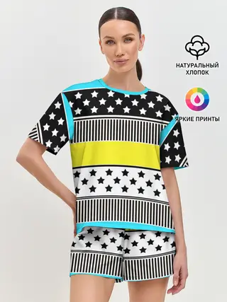 Детская пижама с шортами / Неоновый яркий полосатый узор