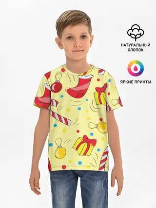 Детская пижама с шортами / Новогодний узор на желтом фоне