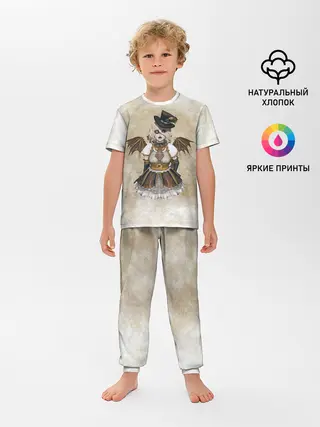 Пижама офигенная, ткань эластичная, не растягивается, рисунок яркий, после стирок яркость не теряется, к телу тоже очень приятная. Думаю сноса ей не будет
