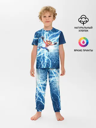 Пижама яркая. После стирки не полиняла. На рост 114 см взяли размер 122 и не пожалели