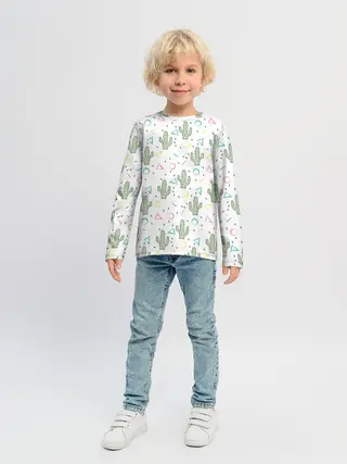 Пижама яркая. После стирки не полиняла. На рост 114 см взяли размер 122 и не пожалели