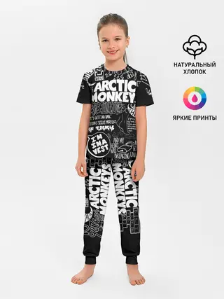 Пижама офигенная, ткань эластичная, не растягивается, рисунок яркий, после стирок яркость не теряется, к телу тоже очень приятная. Думаю сноса ей не будет