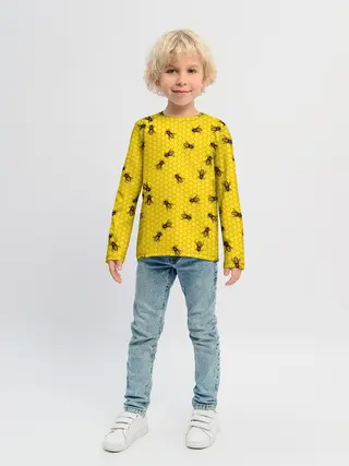 Пижама яркая. После стирки не полиняла. На рост 114 см взяли размер 122 и не пожалели