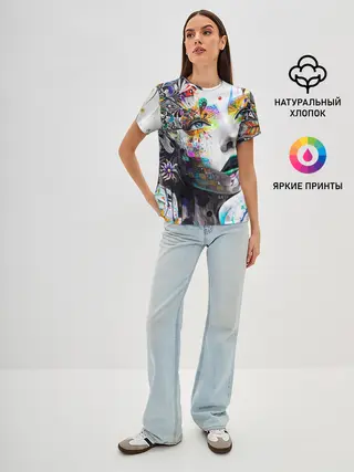 Футболка классная, все понравилось. Принт качественный. При стирке 40градусов даже не полиняла. Единственное, тянется сильно. Как бы не растянулась после нескольких стирок.
