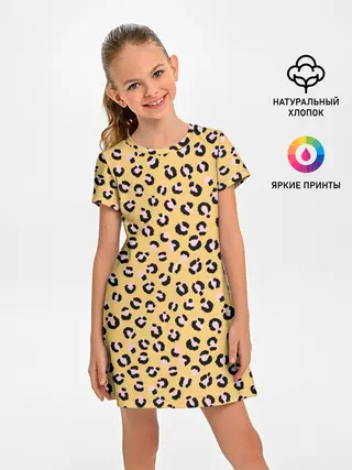 Детская базовая футболка / Желтый леопардовый принт