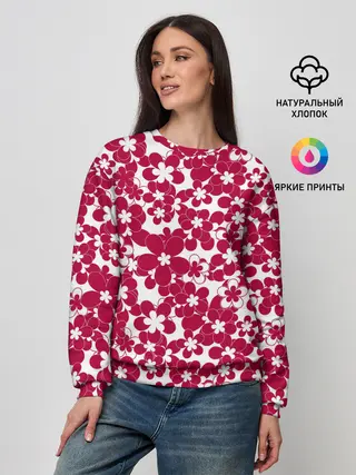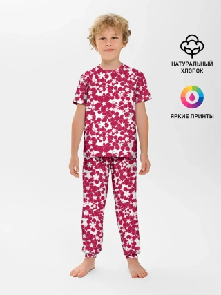 Детская базовая футболка / Бело-красный цветочный