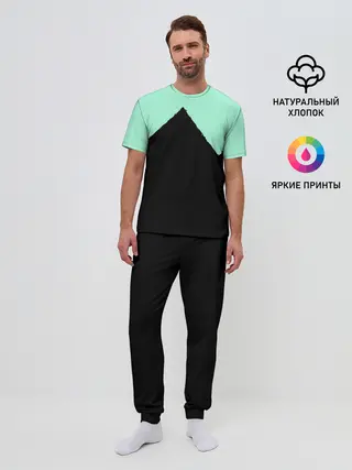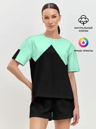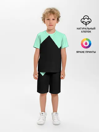 Детская базовая футболка / неровные зубья черный мятный