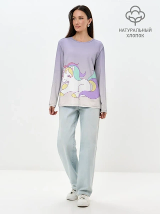 Детская базовая футболка / единорожек на фиолетовом