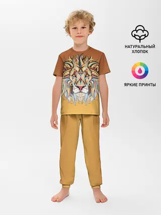 Детская базовая футболка / Стилизованный арт ЛЕВ морда