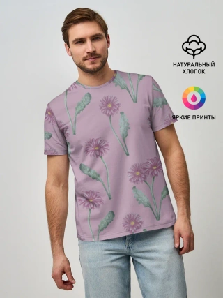 Детская базовая футболка / Розовые герберы на розовом фоне