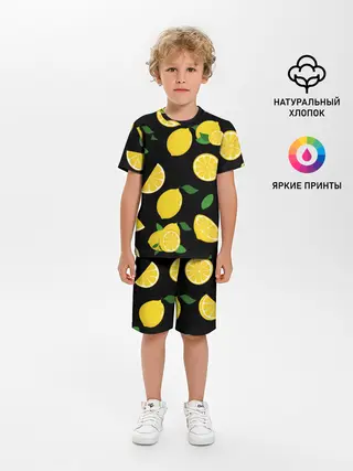 Детская базовая футболка / Лимоны на чёрном