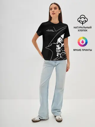 Футболка классная, все понравилось. Принт качественный. При стирке 40градусов даже не полиняла. Единственное, тянется сильно. Как бы не растянулась после нескольких стирок.