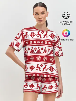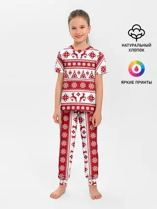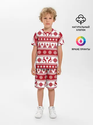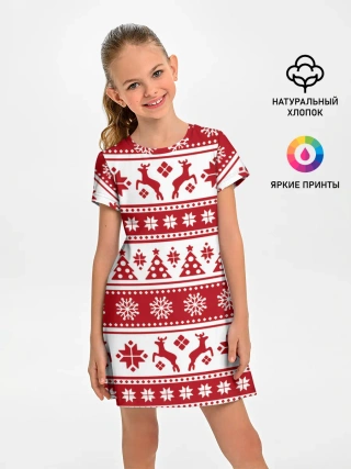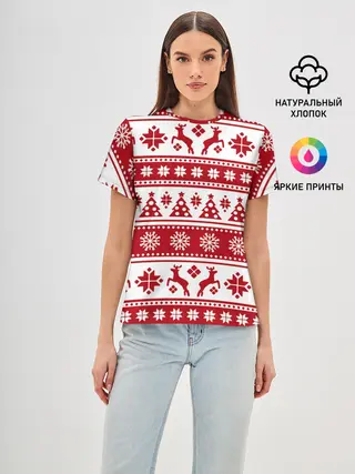 Детская базовая футболка / Новый Год | Олени и снежинки