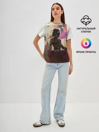 Футболка классная, все понравилось. Принт качественный. При стирке 40градусов даже не полиняла. Единственное, тянется сильно. Как бы не растянулась после нескольких стирок.