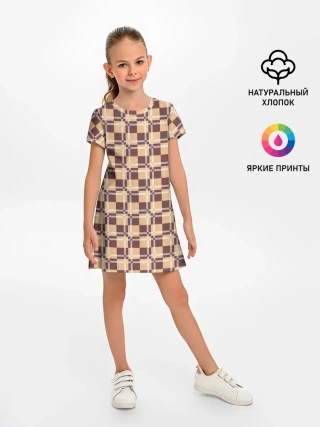 Детская базовая футболка / Коричневые и бежевые квадраты с линями