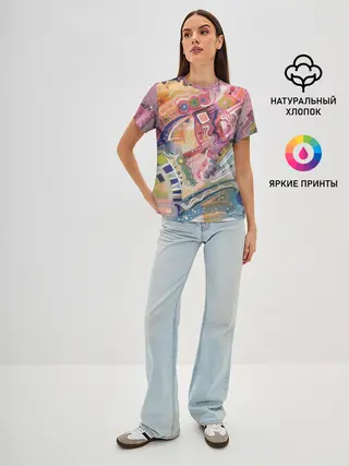 Футболка классная, все понравилось. Принт качественный. При стирке 40градусов даже не полиняла. Единственное, тянется сильно. Как бы не растянулась после нескольких стирок.