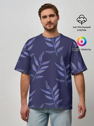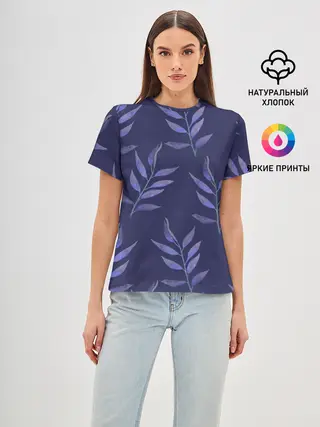 Детская базовая футболка / Листья на темно синем фоне
