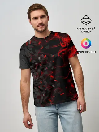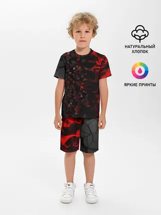 Детская базовая футболка / 3Д Разлом | 3D Плиты и огонь