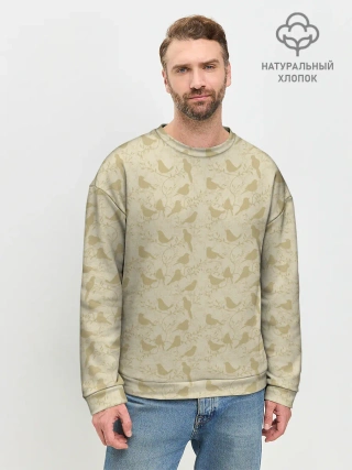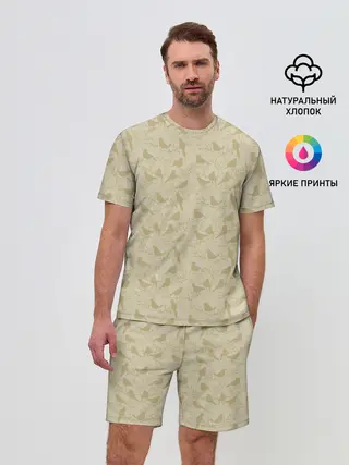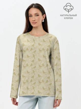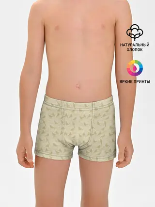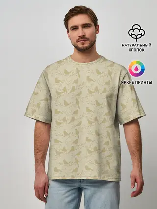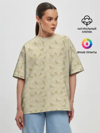 Детская базовая футболка / Бежевый принт силуэты птичек