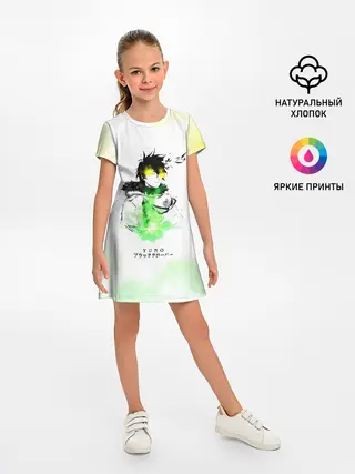 Детская базовая футболка / Чёрный клевер Юно кислотный