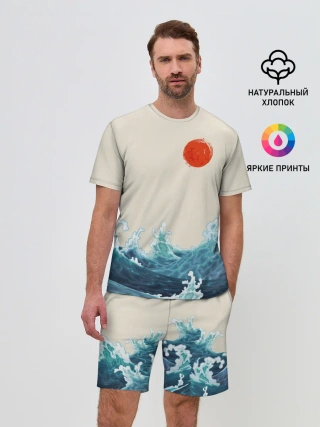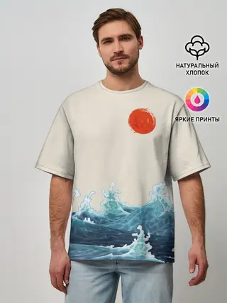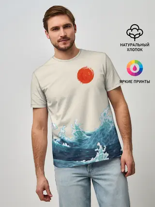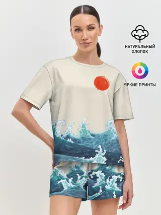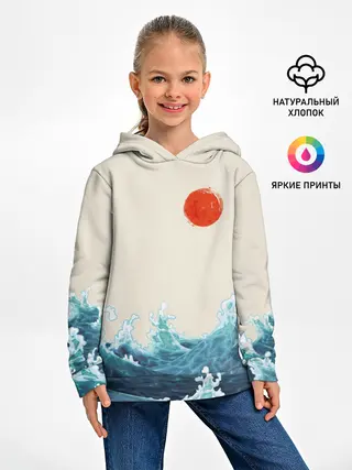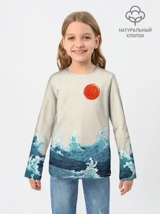 Детская базовая футболка / Японский Стиль Волны и Солнце