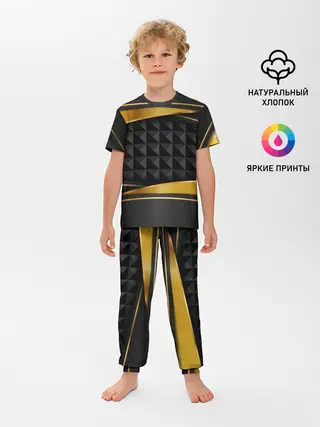 Детская базовая футболка / 3D luxury black gold Плиты 3Д